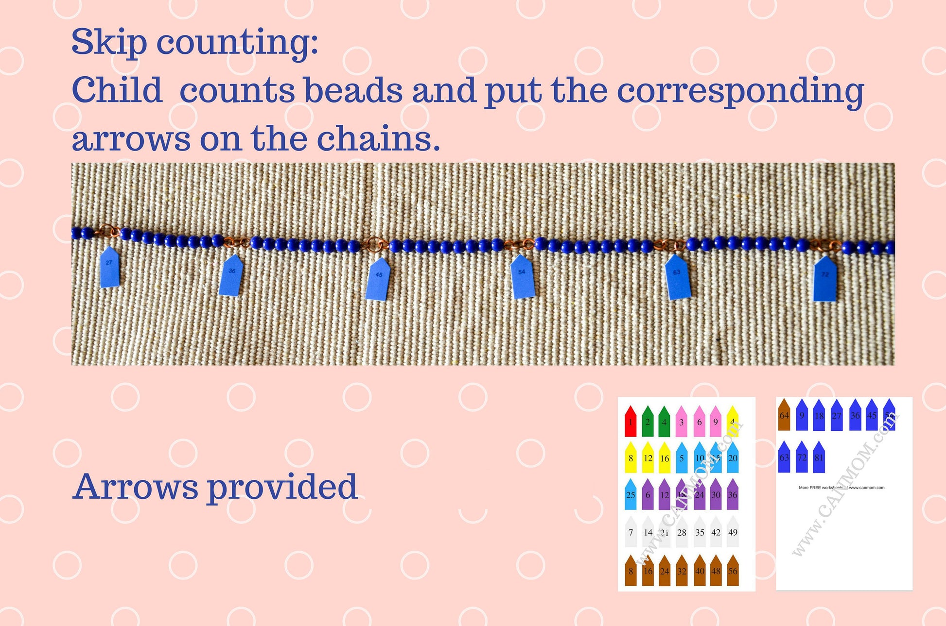 An older child will see the multiplication tables from these chains.